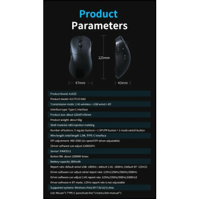 Тип сенсора Оптичний Інтерфейс підключення USB + Bluetooth + USB адаптер 2.4ГГц Роздільна здатність, dpi 12000 Кількість кнопок 6 Тип підключення Комбіноване Таксон Миші Бренд Ajazz Основний колір Червоний Колір Red Основний колір Білий Колір White - Відгуки (0)