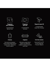 Максимальне навантаження: 120 кг Максимальний зріст: 180 см Підголовна подушка: Знімна Поперекова подушка: Знімна й нерегульована по висоті Максимальний кут відкидання: 160° Тип підлокітників: 1D (регулювання в одному напрямку)