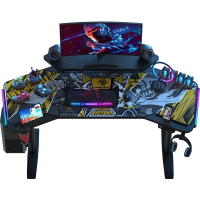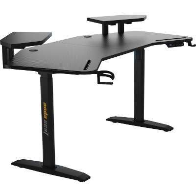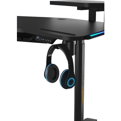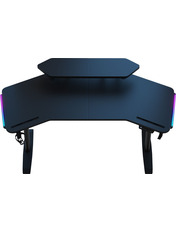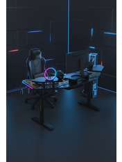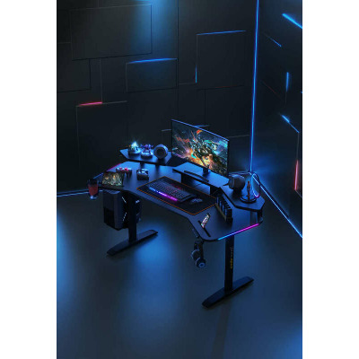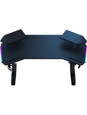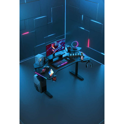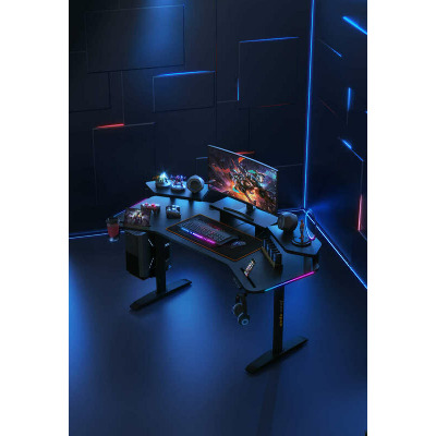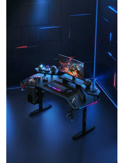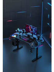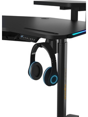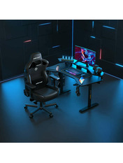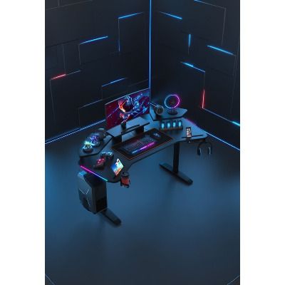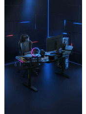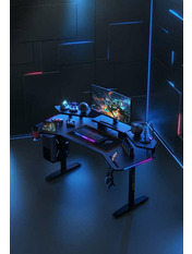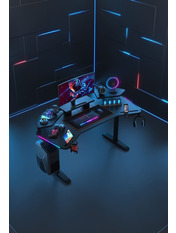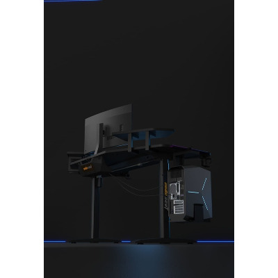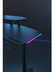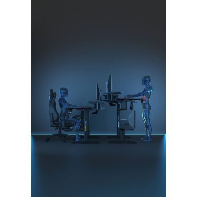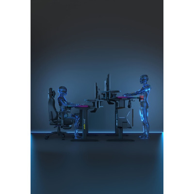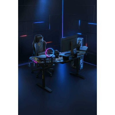 Anda Seat Shadow Warrior — стіл для геймерів з регулюванням висоти та яскравою підсвіткою. Його ергономіка та функціональність мають беззаперечний вплив на ваш комфорт та продуктивність під час роботи та гри. Ігровий стіл Shadow Warrior оснащений високотехнологічним механізмом регулювання висоти в діапазоні 75-120 см з електронною системою керування та контролю. У сталевий каркас інтегрований електропривод, який забезпечує плавний підйом на необхідну висоту зі швидкістю 26 мм/с. Регулювання висоти здійснюється натисканням кнопок на панелі керування, що дозволяє запам'ятовувати 3 значення висоти для швидкого переходу до потрібного рівня. Збереження та скидання налаштувань виконується одним натисканням. Зміна положень дуже важлива для піклування про здоров'я: періодичний перерозподіл навантаження і почергове розслаблення різних груп м'язів дозволяє залишатися в хорошій фізичній формі навіть при багатогодинній роботі та напружених ігрових сесіях. Вбудована система підсвітки реалізує тривимірні візуальні ефекти та вільне перемикання між 15 режимами: від статичного монохромного до найскладніших кольорових градієнтів. Конструкція столу чудово поглинає вібрації, залишаючись стабільною навіть під час найзапекліших ігрових сутичок, що значно підвищує ігровий досвід та точність керування. Основа столу виконана з промислової вуглецевої сталі з антикорозійним покриттям та витримує навантаження до 100 кг. Завдяки регульованим опорам стіл можна встановити навіть на нерівну підлогу. Стільниця виготовлена з матеріалу високої якості з карбоновим покриттям. Вигнуті краї та закруглені кути гарантують безпечний та комфортний ігровий процес. Форма стільниці спроектована спеціально під потреби кіберспортсменів, для яких важливий максимально вільний і функціональний ігровий простір. Попрощайтеся з хаосом на столі та поплутаними проводами. Приховані отвори для проводів та кабельний органайзер допоможуть організувати ідеальний порядок на столі.