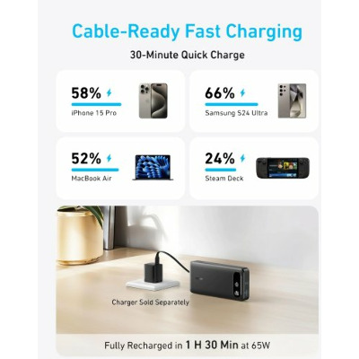 • Павербанк Anker PowerCore 2xUSB-C + 1xUSB-A 87 Black 20000 87W 20000mAh Black (A1383H11)