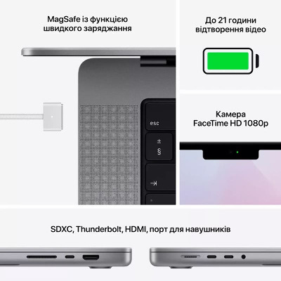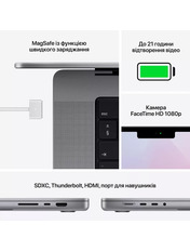 Діагональ екрану 16" Таксон Ноутбуки Бренд Apple Основний колір Сірий Колір Space Gray Операційна система MacOS Monterey Об'єм накопичувача SSD 512 ГБ Об'єм RAM 32GB Модель процесора Apple M1 Pro Артикул Z14V0008D - Відгуки (0)