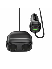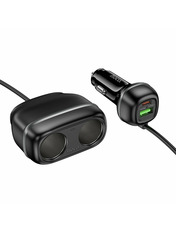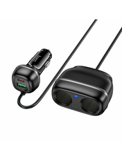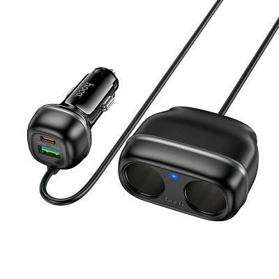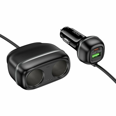 • Автомобільний зарядний пристрій HOCO Z59 Rank оснащений портом USB-A потужністю 18 Вт та портом USB-C потужністю 30 Вт, що дозволяє йому здійснювати швидку зарядку з підтримкою різних протоколів, включаючи PD30W, QC3.0, FCP та AFC. Додатково пристрій має розгалужувач для прикурювача с подовжувачем на два гнізда потужністю 12 В/120 Вт та 24 В/240 Вт. Довжина кабелю становить 0,75 м. Виготовлений із вогнестійкого полікарбонату, HOCO Z59 Rank забезпечує надійність та безпеку завдяки вбудованому багаторівневому захисту. Якісні контакти встановлюють стійке з’єднання та гарантують ефективну та безпечну зарядку ваших девайсів. Дизайн пристрою доповнюється елегантним підсвічуванням, яке робить його використання зручним у темряві. ОСОБЛИВОСТІ АВТОМОБІЛЬНОГО ЗАРЯДНОГО ПРИСТРОЮ HOCO Z59 RANK: • Два порти для одночасної зарядки кількох пристроїв. • Підтримка протоколів PD, QC, FCP, AFC для швидкої та ефективної зарядки. • Вогнестійкий полікарбонат для довговічності та безпеки. • Високоякісні матеріали, багаторівнева система захисту та виробничі стандарти, підтверджені сертифікатами RoHS, CE, FCC, забезпечують довговічність та надійність зарядного пристрою. • Виділяється незвичайною конструкцією, яка дозволяє зберегти доступ до роз’єму прикурювача, при цьому одночасно заряджаючи від нього одразу кілька гаджетів. • LED-індикація робить використання комфортним в умовах недостатнього освітлення. • Сучасний та естетично приємний зовнішній вигляд.