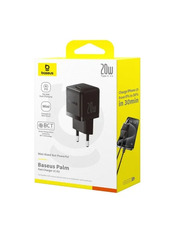 • Мережевий зарядний пристрій Baseus Palm 1C Black 20 1 USB-C Type-C to Lightning (1 USB-C) 20W + кабель Type-C to Lightning Black (E0116401)