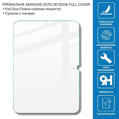 Преміальне загартоване скло 3D Edge Full Cover створене спеціально для нової лінійки iPad. Завдяки точному 3D-закругленню країв та повному покриттю екрану, скло максимально точно повторює форму дисплея, забезпечує комфорт під час використання та надійний захист від подряпин. Скло виготовлене з загартованого матеріалу з твердістю 9H, має оптимальну прозорість та не спотворює кольори, зображення чи чутливість сенсора. Повне клейове покриття Full Glue гарантує відсутність повітряних плям, високу чутливість торкання та надійну фіксацію по всій площині екрану. Заокруглений край 3D Edge забезпечує плавний перехід між склом та рамкою дисплея, завдяки чому скло не дряпає пальці, не відходить по кутах та сумісне з чохлами. Основні переваги: 3D Edge Full Cover — повне покриття дисплея з плавним заокругленням країв Full Glue — клейове покриття по всій площі для точної фіксації Твердість 9H — захист від подряпин та дрібних пошкоджень Прозорість Ultra Clear — без спотворення кольорів і чіткості Повна сумісність із чутливістю сенсора Сумісне з більшістю чохлів Антискол — захисний шар зменшує ризик уламків при ударі Встановлення без бульбашок Сумісність: Apple iPad 10.9" (2022/2024) / Apple iPad (А16) 2025 11" Комплектація: Захисне скло 3D Edge Full Cover Набір для встановлення (серветка, волога/суха, стікери)