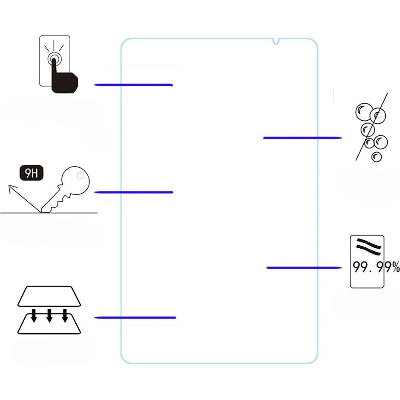 "Надміцне, ультратонке і абсолютно прозоре захисне скло забезпечить збереження екрану вашого планшета. Протектор із загартованого скла принципово відрізняється від традиційних захисних плівок і перевершує їх по ряду ключових характеристик: Захисний екран виготовлений із надміцного загартованого скла, надтонкий, ніяк не впливає на чутливість сенсора. Повністю прозорий, не спотворює кольори, має покриття антивідблиску і фільтр, що не пропускає ультрафіолетові промені. Завдяки олеофобному верхньому шару - спеціальної плівці нанометрової товщини, що відштовхує жир, - екран стійкий до появи забруднень, відбитків пальців і легко чиститься за допомогою мікрофібри Спеціально оброблене скло має високу твердість 9H - подряпати його проблематично навіть викруткою або канцелярським ножем. Через місяці активного використання ви не побачите на ньому подряпин, які неминуче надміру з'являються на звичайних захисних плівках. Крім того, захисне скло здатне зберегти дисплей цілим при некритичних падіннях. Навіть якщо захисний екран буде пошкоджений внаслідок сильної механічної дії, він не розлетиться на уламки, які могли б подряпати дисплей. Легко встановлюється, не утворюючи повітряних бульбашок Екран із загартованого скла - це інноваційний продукт, що значно перевершує за своїми захисними властивостями прості плівки для дисплея. Рекомендуємо його тим, хто дбайливо поводиться з технікою і хоче, щоб через рік чи два після покупки їх улюблений планшет, як і раніше, виглядав абсолютно новим. "