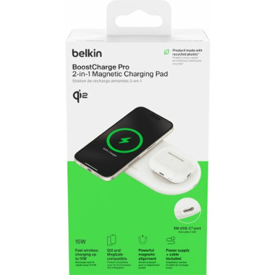 • Бездротовий зарядний пристрій Belkin BoostCharge Pro 2in1 Qi2 White 15 White (WIZ021VFWH)