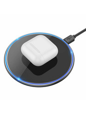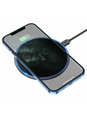 HOCO CW6 Pro Easy 15W charging wireless fast charger Black — бездротовий зарядний пристрій, який забезпечує зарядку смартфона без необхідності підключення кабелю безпосередньо до роз'єму мобільного девайса. Зарядка працює за стандартом Qi, який дозволяє впізнавати різні гаджети, визначати рівень їхнього заряду та своєчасно відключатися для економії електроенергії. Заряджати телефон за допомогою бездротової зарядки Hoco CW6 Pro Easy 15W набагато зручніше та швидше, ніж від стандартного адаптера живлення. Зарядний пристрій маленький, але потужний: підтримує швидку зарядку. При цьому вихідна потужність для гаджетів бренду Apple становитиме 7.5 Вт, а для решти 10 Вт або 15 Вт. Крім того, він підходить для малопотужних пристроїв, наприклад, кейсу від бездротових навушників. Цей аксесуар сумісний із мобільними пристроями, що мають вбудовану функцію бездротової зарядки. Переваги: − Для низки телефонів Hoco CW6 Pro Easy 15W має можливість прискореної зарядки, що забезпечує на 40% більшу швидкість заряду. Працює лише з моделями, які підтримують таку функцію. В інших випадках забезпечується стандартна швидкість бездротової зарядки. Для швидкого заряджання слід використовувати адаптер живлення (Quick Charge) із комплекту. − Бездротова зарядка має форму диска компактного розміру: її діаметр становить 10 см, а товщина всього 0,8 см. Виглядає лаконічно, не займає багато місця на робочому столі і легко поміщається у сумку. − Корпус виготовлений із якісного пластику. До дна приклеєна прогумована накладка, яка не дає пристрою ковзати по гладкій і рівній поверхні. − Для початку зарядки телефон треба просто покласти на платформу. Можна прямо у чохлі. Тільки відстань між задньою панеллю смартфона та платформою має становити менше 8 мм. − Використання аксесуара абсолютно безпечне завдяки використанню якісних електронних компонентів, вбудованому захисту від стрибків напруги, короткого замикання та перегріву. Гаджети заряджаються швидко та ефективно.