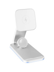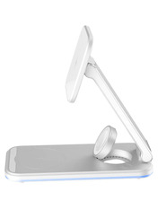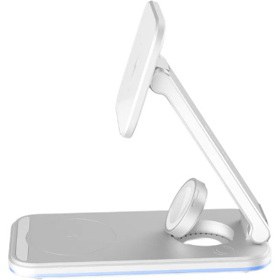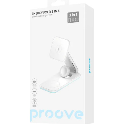 Proove Magnetic Energy Fold 3 in 1 - просте рішення для зарядки приладів! Основні характеристики: - Вхід: Type-C; - Сумісний з QI приладами; - Вихід для годинників: 5W; - Вихід для смартфона: 15W; - Вихід для навушників: 2.5W; - Потужність входу: 5V/3A, 9V/2A; - Виготовлений з алюмінію та АБС пластику. Універсальність Magnetic Energy Fold допоможе зарядити одразу три різні пристрої без втрати потужності. Гаджет має 3 різні точки контакту: для годинника, навушників та смартфону, що компактно розміщенні та не заважають один одному. Технічні характеристики Magnetic Energy Fold виготовлений із пластику алюмінію і скла, що створює мінімалістичний та сучасний вигляд. Вхідна сила струму становить 5V/3A, 9V/2A, а кожний вихід має свою потужність. Годинники: 5W, навушники: 2.5W, смартфон: 15W. Захисні властивості Система захисту оберігає ваш гаджет від високої напруги, перегріву, короткого замикання, електромагнітного випромінювання або перезаряджання.