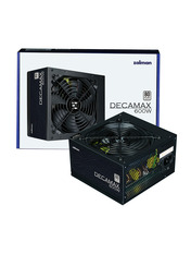 Zalman 500W Decamax - продуктивний блок живлення з формфактором ATX, який забезпечить стабільну роботу комп'ютера. Виріб дозволить зібрати надійну систему, адже має потужність 500 Вт. Блок живлення оснащений ефективним вентилятором діаметром 12 см та подвійним алюмінієвим радіатором для мінімізації внутрішнього тепловиділення. Активна система PFC із максимальним коефіцієнтом потужності 99% забезпечує постійну та стабільну потужність, а також високу енергоефективність. Високонадійний конденсатор використовується для забезпечення стабільної напруги навіть за високих температур до 105˚C. Однорелейна конструкція забезпечує до +12 В доступної потужності за 91% виходу для стабільної напруги на CPU і GPU, які є основними компонентами ПК. EMI-фільтр встановлений для придушення частот, що викликають шум та для поліпшення роботи системи.