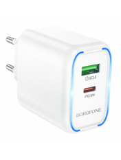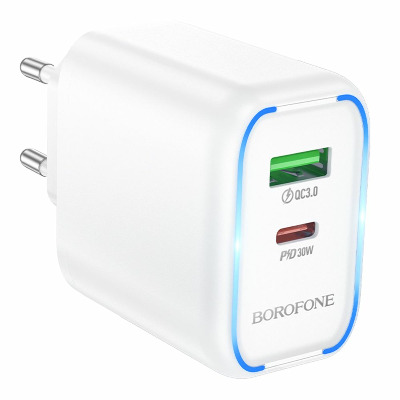Бренд Borofone Основний колір Білий Колір White Потужність, W 30 Роз'єми 1 USB-A + 1 USB-C Кількість портів USB-C 1 Кількість портів USB-A 1 Кабель в комплекті Type-C to Lightning -