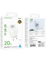 (1 USB-A + 1 USB-C) 20W + кабель Type-C to Type-C White