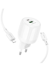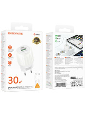 Мережевий зарядний пристрій Borofone BA94A Lustrous (1 USB-A + 1 USB-C) 30W + кабель Type-C to Lightning White