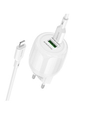 • Мережевий зарядний пристрій Borofone BA94A Lustrous White Type-C to Lightning (1 USB-A + 1 USB-C) 30W + кабель Type-C to Lightning White