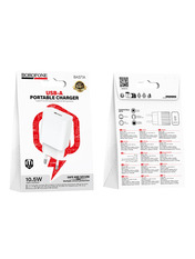 Бренд Borofone Потужність, W 10.5 Основний колір Білий Колір White Роз'єми 1 USB-A Кількість портів USB-C Відсутні Кількість портів USB-A 1 Кабель в комплекті Відсутній -