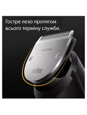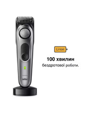 Бренд Braun Тип Тример Живлення Акумулятор + мережа Призначення Для бороди та голови Час заряджання акумулятора, хв 60 Час автономної роботи, хв 60 Колір Gray -