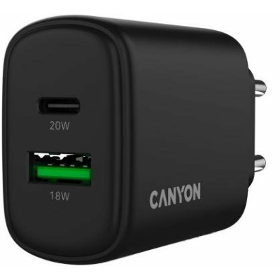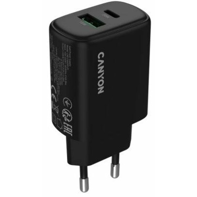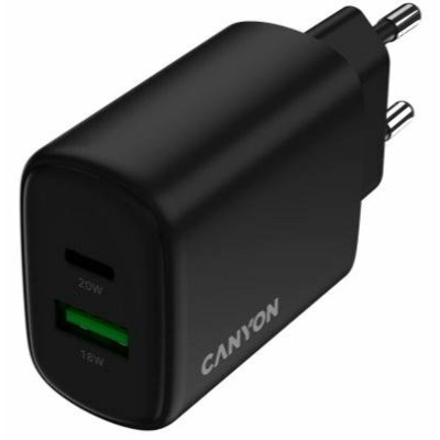 • Мережевий зарядний пристрій Canyon OnCharge 200 Black 1 USB-A + 1 USB-C (1 USB-A + 1 USB-C) 20W Black (CNE-CHA200-31)