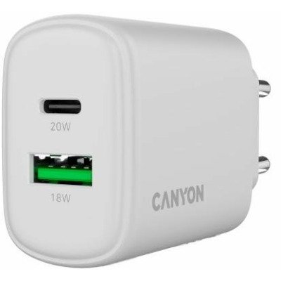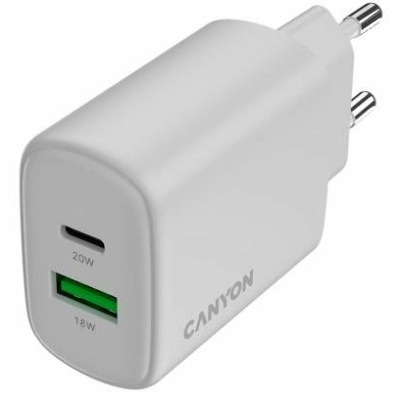 • Мережевий зарядний пристрій Canyon OnCharge 200 White 1 USB-A + 1 USB-C (1 USB-A + 1 USB-C) 20W White (CNE-CHA200-21)