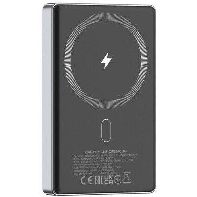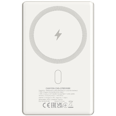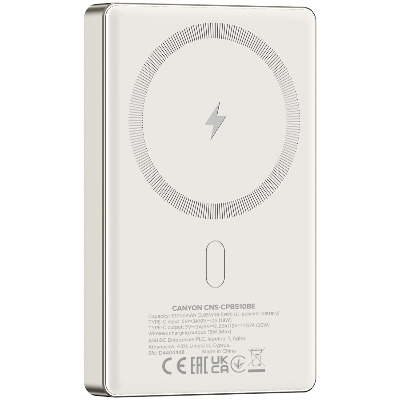 • Canyon OnPower 510 Slim — компактна та містка портативна батарея на 10 000 мАг, яка зробить зарядку максимально комфортною. Оснащена вихідним портом USB Type-C потужністю 20 Вт, а також підтримує MagSafe, що розширює можливості заряджання та дозволяє швидко відновлювати енергію ваших ґаджетів. Пристрій виготовлений в ергономічному корпусі та компактних габаритах, тому з легкістю поміститься в вашій кишені та завжди може бути під рукою. Невеликі розміри та зручна форма дозволяють брати павербанк у відрядження чи подорожі, щоб завжди залишатися на зв'язку. Для зручності використання модель обладнано LED-індикацією, що показує поточну кількість заряду. У комплекті наявний кабель. Для довготривалого використання та безпеки має захист від перенапруги, від перевантаження по струму, від короткого замикання, від перезаряджання та від глибокого розряду.