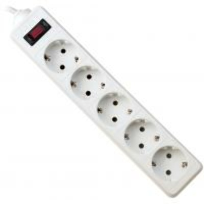 1.8m / 5 розеток / Сила струму до 10А / Навантаження до 2200 Вт / Кабель 0,75mm² / Вимикач / Тип вилки CEE 7/7 (Євро) / Колір: Білий