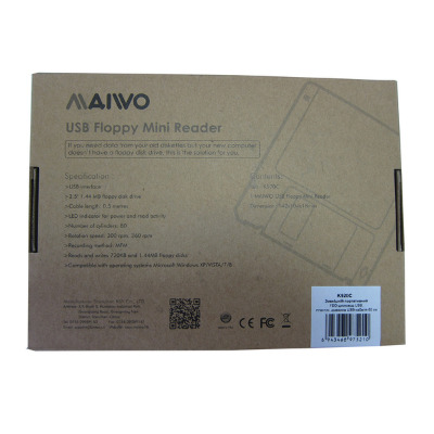 Внешний портативный FDD-дисковод Maiwo USB, длина USB-кабеля 50 см, пластик