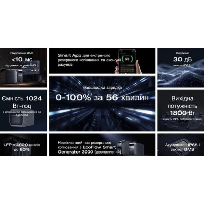 Ємність: 1024 Вт/год / Потужність: 1800 Вт / Тип батареї: LiFePO4