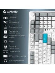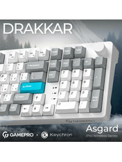 GamePro Asgard Drakkar — це потужна бездротова механічна клавіатура, яка поєднує в собі повнорозмірну функціональність із компактністю. Її 96% формфактор зберігає повноцінний набір клавіш, включно з цифровим блоком, але при цьому займає значно менше місця на столі порівняно з класичними повнорозмірними моделями. Такий розмір робить Drakkar ідеальним вибором для тих, хто хоче мати всі необхідні клавіші під рукою, не жертвуючи робочим простором. Серцем клавіатури є змащені лінійні перемикачі Keychron Super Switch Red типу «silent», які забезпечують надзвичайно плавний і рівномірний хід із мінімальним шумом. Конструкція gasket-mount у поєднанні з шістьма шарами шумопоглинання створює м’яке, пружне відчуття при натисканні та глибоке, глухе звучання, характерне для значно дорожчих моделей. Усі вібрації ефективно гасяться, тому клавіатура звучить акуратно й збалансовано навіть під час інтенсивного набору тексту. Drakkar пропонує максимальну гнучкість підключення: дротове через, бездротове Bluetooth 5.2 або стабільне з’єднання 2.4 ГГц через комплектний ресивер. Акумулятор місткістю 4000 мАгод гарантує тривалу роботу без постійної підзарядки. Яскраве регульоване RGB-підсвічування з безліччю ефектів дозволяє повністю персоналізувати зовнішній вигляд, а підтримка hot-swap дає змогу легко замінювати перемикачі за бажанням. Якісні PBT-кейкапи профілю Cherry мають приємну матову текстуру й високу стійкість до стирання, тому написи залишаться чіткими роками. GamePro Asgard Drakkar — це стильна, тиха й технологічна клавіатура преміального рівня, яка пропонує виняткову ергономіку, сучасні можливості та справжнє задоволення від друку.