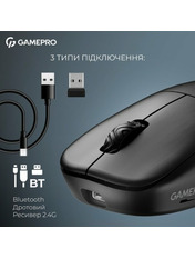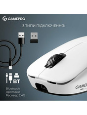 Тип сенсора Оптичний Інтерфейс підключення Bluetooth + USB 2.4GHz (Radio) Роздільна здатність, dpi 26000 Кількість кнопок 5 Тип підключення Комбіноване Таксон Миші Бренд GamePro Основний колір Білий Колір White Основний колір Чорний Колір Black - Відгуки (0)