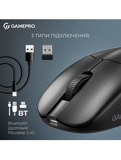 Тип сенсора Оптичний Інтерфейс підключення USB + Bluetooth + USB 2.4Ghz (Radio) Роздільна здатність, dpi 26000 Кількість кнопок 5 Тип підключення Комбіноване Таксон Миші Бренд GamePro Основний колір Чорний Колір Black - Відгуки (0)