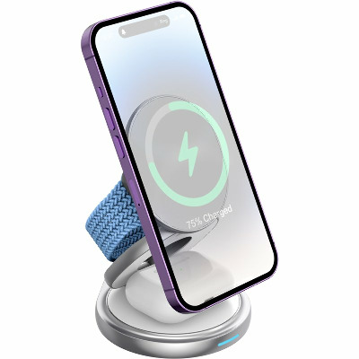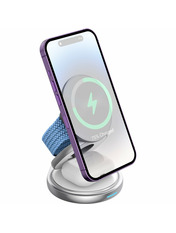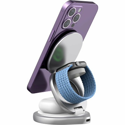 • Багатофункціональність та потужність Gelius Foldy дозволяє одночасно заряджати три пристрої: телефон, бездротові навушники та годинник. Максимальна потужність зарядки для телефону становить до 15W, для навушників — 5W, а для годинника — 2,5W. Бездротова зарядка Gelius Foldy - ідеальне рішення для тих, хто цінує ефективність і зручність. Примітка: смарт-годинники Samsung не сумісні з даним пристроєм. Компактний дизайн Зарядка Gelius Foldy вирізняється своєю компактністю та інноваційним дизайном у формі "жабки". Пристрій легко розкладається в стійку та складається, що робить його зручним для транспортування і зберігання. Завдяки компактним розмірам (88*80*25 мм) та вазі 215 г, зарядка займає мінімум місця. В складеному вигляді пристрій легко поміститься навіть у маленьку сумочку. Зручність використання Стійка зарядки може повертатися на 360 градусів, що забезпечує максимальну зручність при використанні. Магнітне кріплення для телефону дозволяє зручно переглядати контент під час заряджання як у вертикальному, так і горизонтальному положенні. Якість матеріалів і безпека Зарядка виготовлена з високоякісних матеріалів, таких як цинковий сплав, силікон та пластик, які не перегріваються та забезпечують довговічність пристрою. Зарядка також оснащена системою захисту від короткого замикання і низької напруги, що гарантує безпечне використання. Зручне живлення та індикація Живлення на док-станцію подається через порт Type-C, що забезпечує швидке та стабільне заряджання. У комплекті йде кабель Type-C-Type-C. Внизу зарядного пристрою розташована світлова індикація, яка сигналізує про стан заряджання, роблячи процес зарядки ще більш зручним та інформативним.