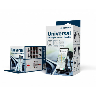 Універсальний автомобільний тримач для смартфона; Регульована ширина для використання з телефонами шириною від 65 до 85 мм; Присоска з гнучкою шийкою для фіксації на будь-якому склі автомобіля; Кріплення на вентиляційну решітку; Матеріал: ABS; Вага нетто: 130 г; Довжина шиї: 170 мм; Регульована ширина: 65-85 мм; Тип пакування: Картонна коробка; Розмір пакування товара: 145х70х70 мм.; Вага товару у пакуванні: 140 г.