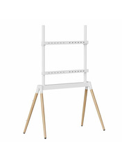 Стильна дерев'яна підлогова підставка під телевізор; Підтримує більшість LCD-телевізорів з діагоналлю 55-86 дюймів; Плавне регулювання висоти; Сумісність із VESA, макс. 600 мм x 400 мм; Інтегрована система кабель-менеджменту; Матеріал: сталь, пластик, бук; Поверхнева обробка: порошкове покриття; Підтримуваний розмір екрана: 55" - 86"; Підтримка VESA: 100 x 100 мм - 600 x 400 мм; Регулювання висоти: 1130-1440 мм; Вантажопідйомність: 40 кг; Розміри: 1025 x 500 x 1475 мм; Вага продукту: 10.2 кг; Колір: білий/дерево; Тип пакування: Картонна коробка; Розмір пакування товара: 975х375х175 мм.; Вага товару у пакуванні: 11.75 кг.