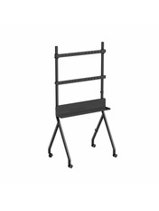 Металева підставка під телевізор з колесами; Підтримує більшість LCD-телевізорів з діагоналлю 55-86 дюймів; Плавне регулювання висоти; Практична полиця для обладнання чи матеріалів; Міцні роликові колеса з механізмом блокування; Сумісність із VESA, макс. 600 мм x 400 мм; Матеріал: сталь, пластик, ДСП; Поверхнева обробка: порошкове покриття; Підтримуваний розмір екрана: 55" - 86"; Підтримка VESA: 100 x 100 мм ~ 600 x 400 мм; Регулювання висоти: 950-1350 мм; Вантажопідйомність: 40 кг; Розміри: 800 x 532 x 1550 мм; Вага продукту: 12.7 кг; Колір: чорний; Тип пакування: Картонна коробка; Розмір пакування товара: 850х440х160 мм.; Вага товару у пакуванні: 14.2 кг.