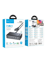 Бренд Hoco Основний колір Чорний Потужність, W 50 Колір Black Роз'єми 1 USB-A + 6 USB-C Кількість портів USB-C 6 Кількість портів USB-A 1 Кабель в комплекті Відсутній Артикул 6942007660693 -