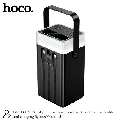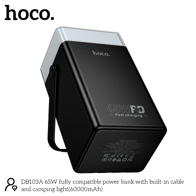 Павербанк Hoco DB103A with built-in cable and camping light 1xUSB-C + 2xUSB-A