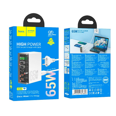 Таксон Мережеві зарядні пристрої Бренд Hoco Потужність, W 65 Колір White Основний колір Білий Роз'єми 3 USB-A + 3 USB-C Кількість портів USB-C 3 Кількість портів USB-A 3 Кабель в комплекті Відсутній - Відгуки (0)