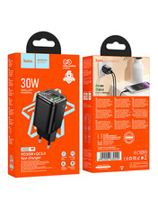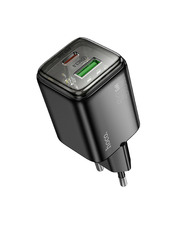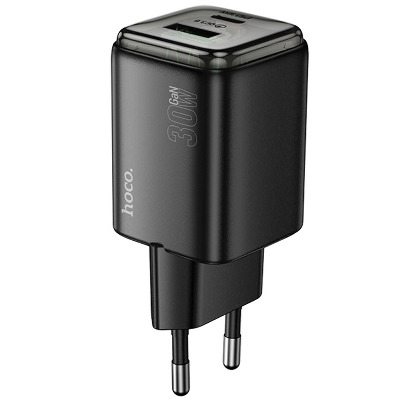 • Мережевий зарядний пристрій Hoco N53 Monsoon Black Відсутній (1 USB-A + 1 USB-C) 30W Black