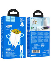 • Мережевий зарядний пристрій Hoco N53 Monsoon Type-C to Lightning White (1 USB-A + 1 USB-C) 30W + кабель Type-C to Lightning White
