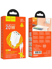 (2 USB-A + 2 USB-C) 20W + кабель Type-C to Type-C Black