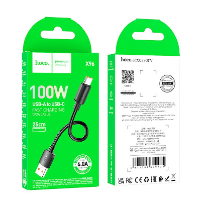 • Кабель синхронізації Hoco X96 Hyper USB to Type-C Black Ні 0,25 100W 0,25m Black