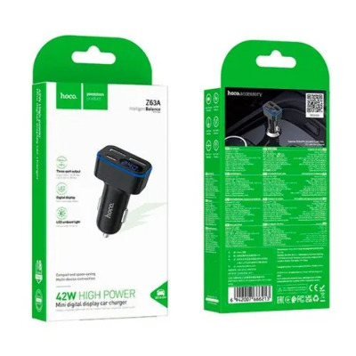 • Автомобільний зарядний пристрій Hoco Z63A Barry 42W 2 USB-A + 1 USB-C Black (6942007666213)
