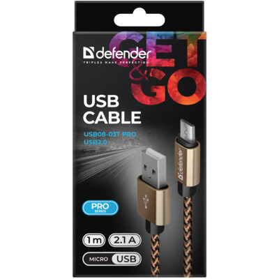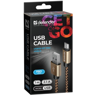Кабель синхронізації Defender USB08-03T USB to microUSB 1m Gold (87800)