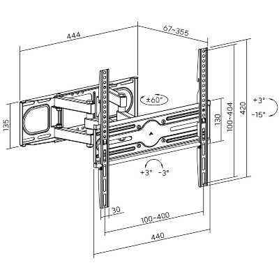 Кронштейн для ТВ AGN AGN70-442P з поворотом/два коліна/32"-70"/40 кг/max.VESA 400x400/Black