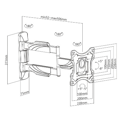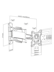 для телевізора, Тип - поворотно-похилий, кількість ступенів свободи - 3, мінімальна підтримувана діагональ - 23", максимальна підтримувана діагональ - 42", VESA - 100 x 100, 200 x 100, 200 x 200, Максимальне навантаження - 35 кг, Нахил - +5°~-8º, відстань до стіни - 52~608 мм, кронштейн, інструкція, монтажний комплект, чорний