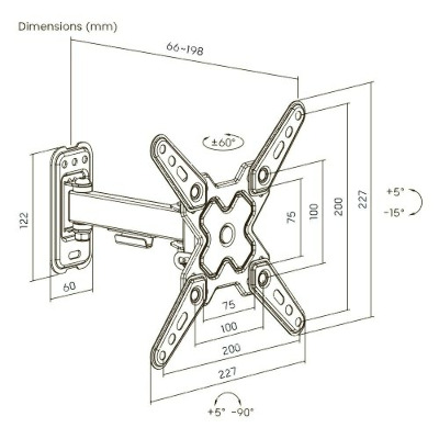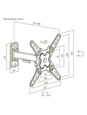 Бренд Brateck Мінімальна діагональ ТВ (Кріплення) 13 Максимальне навантаження (Кріплення) 20 Поворот (Кріплення) 180° Спосіб кріплення (Кріплення) Настінний Максимальна діагональ ТВ (Кріплення) 43 Підтримуємий стандарт VESA (Кріплення) 200 x 200 -