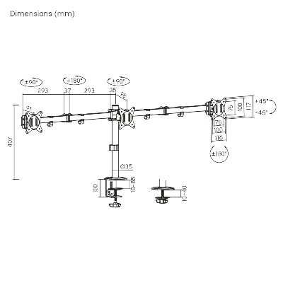 Кронштейн Brateck LDT66-C034, 17"-27", до 7 кг, VE SA від 75x75 до 100x100Кут нахилу: +45°~-45°, Пово LDT66-C034