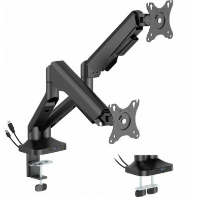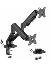 Подвійне механічне кріплення для моніторів Officepro MA452 є професійним і зручним рішенням для організації робочого місця з двома екранами, що ідеально підходить для офісної роботи, дизайну, геймінгу чи фінансового аналізу. Кріплення розраховане на монітори розміром від 17 до 35 дюймів із вагою від 2 до 12 кг кожен, включаючи вигнуті моделі, що забезпечує універсальність для різноманітних потреб користувачів. Кожен монітор можна налаштувати індивідуально завдяки широким можливостям регулювання: нахил у межах ±90° забезпечує комфортний кут огляду, поворот вліво або вправо до ±90° дозволяє адаптувати положення екрана до різних сценаріїв роботи, а повне обертання на 180° дає змогу легко перемикатися між горизонтальним і вертикальним орієнтуваннями. Підтримка стандартів VESA 75x75 і 100x100 забезпечує сумісність із переважною більшістю сучасних моніторів, що робить кріплення універсальним для використання з різними моделями. Монтаж здійснюється просто та надійно за допомогою струбцини або наскрізного отвору, що підходять для стільниць товщиною від 10 до 80 мм, дозволяючи встановити кріплення на різних робочих поверхнях. Інтегровані порти USB 3.0 і Type-C додають функціональності, забезпечуючи швидке підключення периферійних пристроїв, таких як миші, клавіатури чи зовнішні накопичувачі, а також можливість заряджання гаджетів безпосередньо з робочого місця. Вбудована система організації кабелів допомагає підтримувати порядок, приховуючи дроти та запобігаючи їх заплутуванню, що сприяє охайному вигляду робочої поверхні та підвищує продуктивність.
