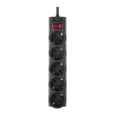 2m / 5 розеток / Сила струму до 16А / Навантаження до 3500 Вт / Кабель 1,5mm² / Вимикач / Тип вилки CEE 7/7 (Євро) / Колір: Чорний