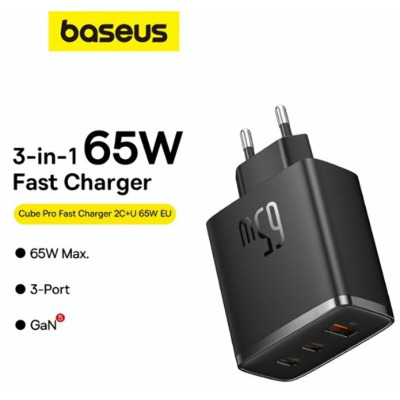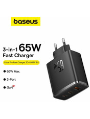 • Мережевий зарядний пристрій Baseus Cube Pro 65 Black Відсутній 1 USB-A + 2 USB-C (1 USB-A + 2 USB-C) 65W Black (P10152301113-00)