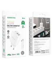 (1 USB-A + 1 USB-C) 35W + кабель Type-C to Type-C White