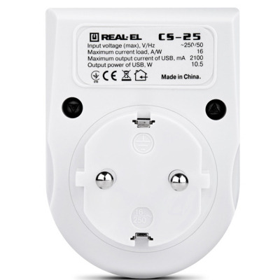 • Мережевий зарядний пристрій REAL-EL CS-25 White Відсутній 2 USB-A (2 USB-A) 10W White 10
